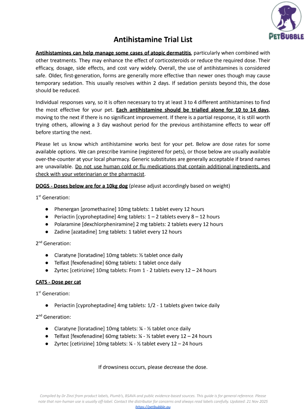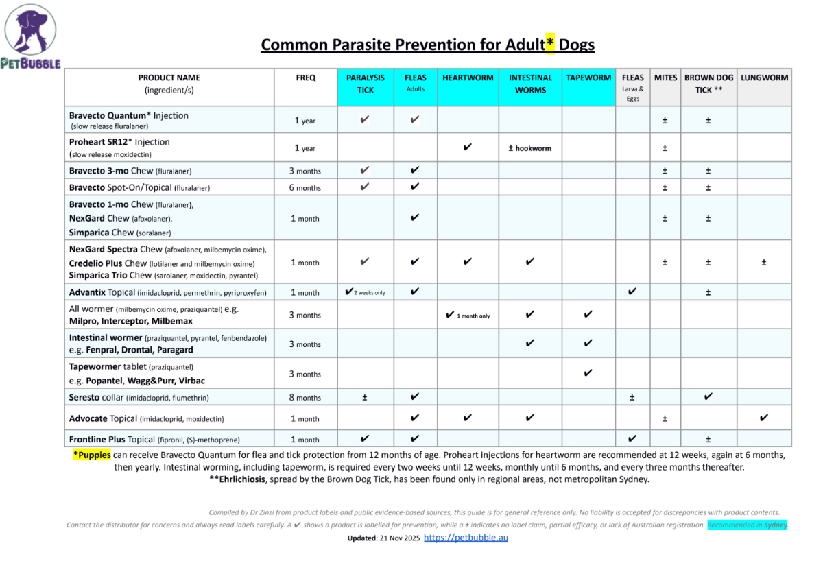 Compiled by Dr Zinzi from product labels, Plumb’s, BSAVA and publicly available